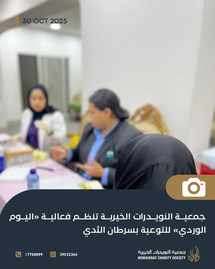 Al-Nuwaidrat, October 30, 2025 - Al-Nuwaidrat Charity, represented by its Women's Committee, organized an awareness event to mark Pink Day for breast cancer awareness, in partnership with Ahmed Ali Kanoo Health Center, Al-Hilal Hospital, and Umm Hussein Community Center.